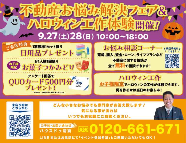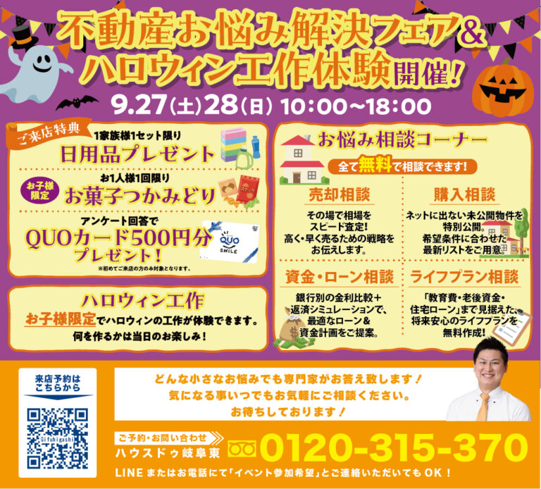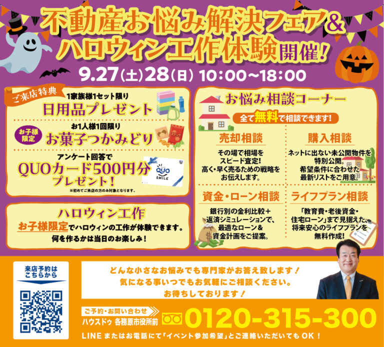 \9/27(土)28(日)は不動産お悩み解決フェア開催/ 大人は不動産相談、子どもはハロウィン工作体験🎃 家族みんなで楽しめるイベントです♪ ...